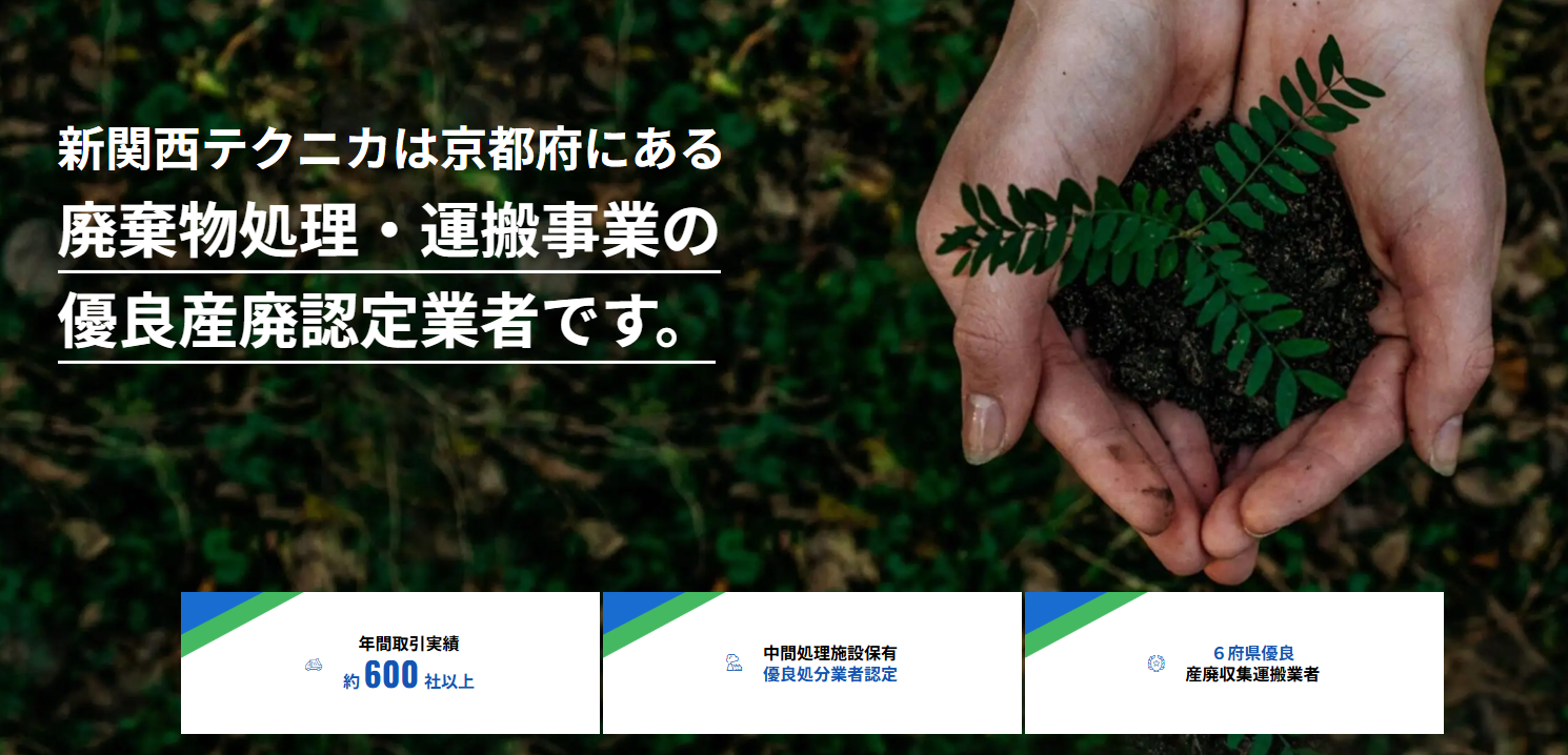 株式会社新関西テクニカは、近畿6府県で「優良産廃処理業者」認定を取得している実績豊富な廃棄物処理業者です。年間600社以上の取引実績と自社処理施設(伏見RC)を保有し、コスト削減と確実な適正処理を両立。法人から個人まで、透明性の高い料金体系で安心して不用品回収や産廃処理を依頼できる信頼の企業です。
