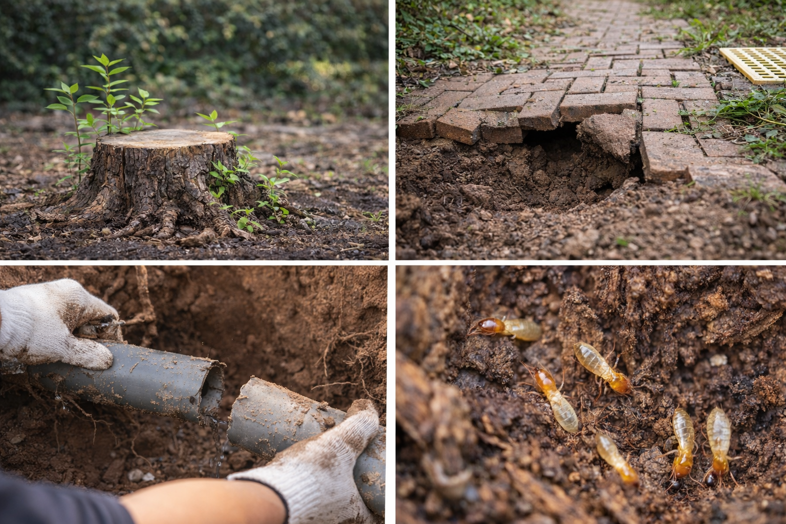 害虫は湿気のある腐木を好むため、根っこの放置は見過ごせません。一度発生すると、駆除や点検に費用がかかり、建物に被害が及べば修繕費も高額になります。