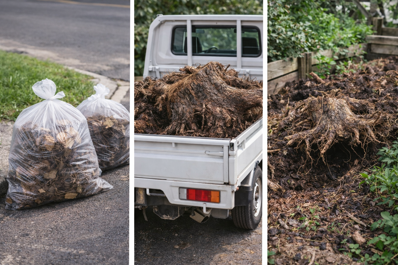 自分で運ぶのが難しい場合は、抜根作業とあわせて業者に処分まで依頼すると、時間と労力を大きく減らせます。