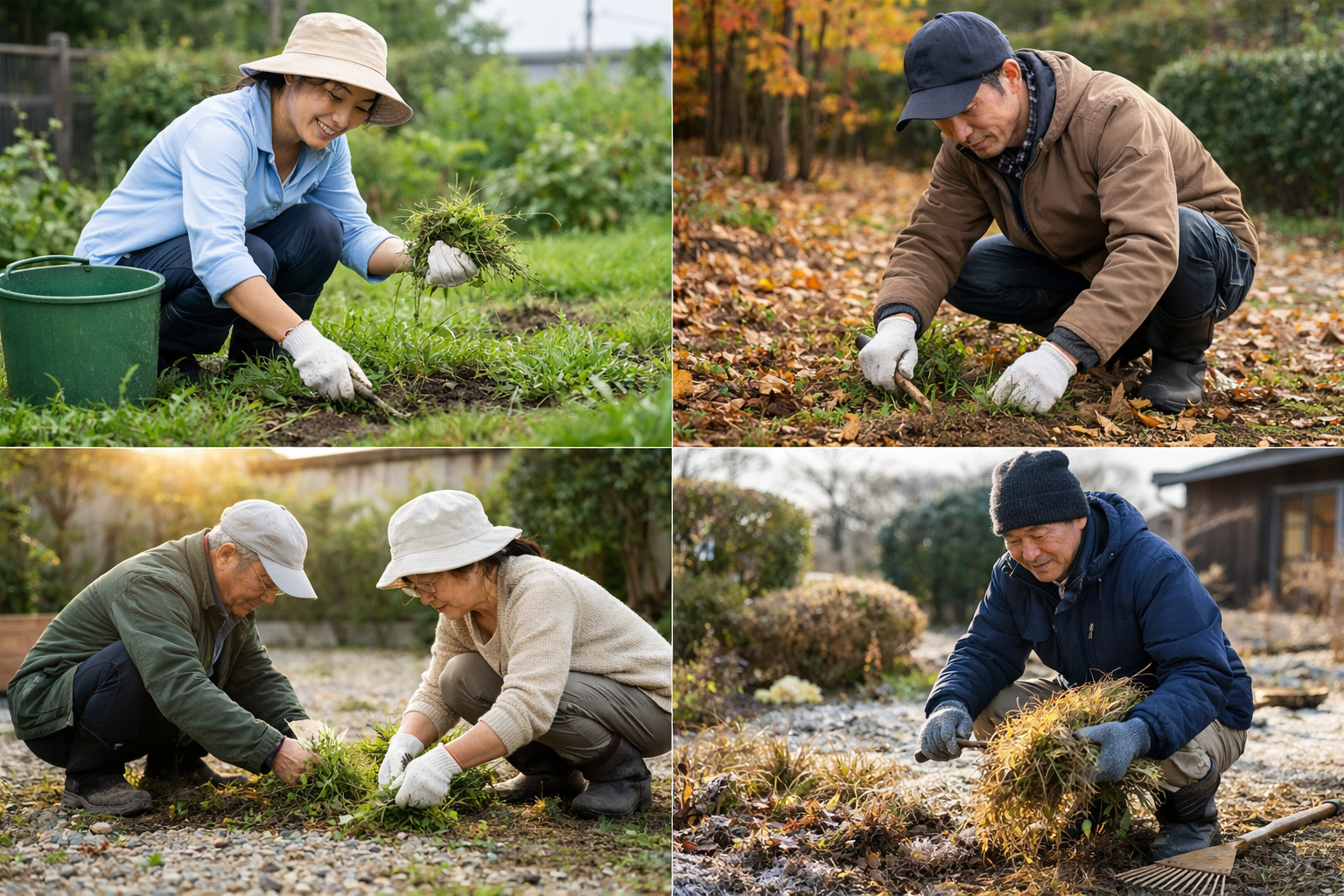 年間を通じた草むしりのコツは、雑草が最も勢いづく前に抑えるたり、翌年に持ち越さない点です。