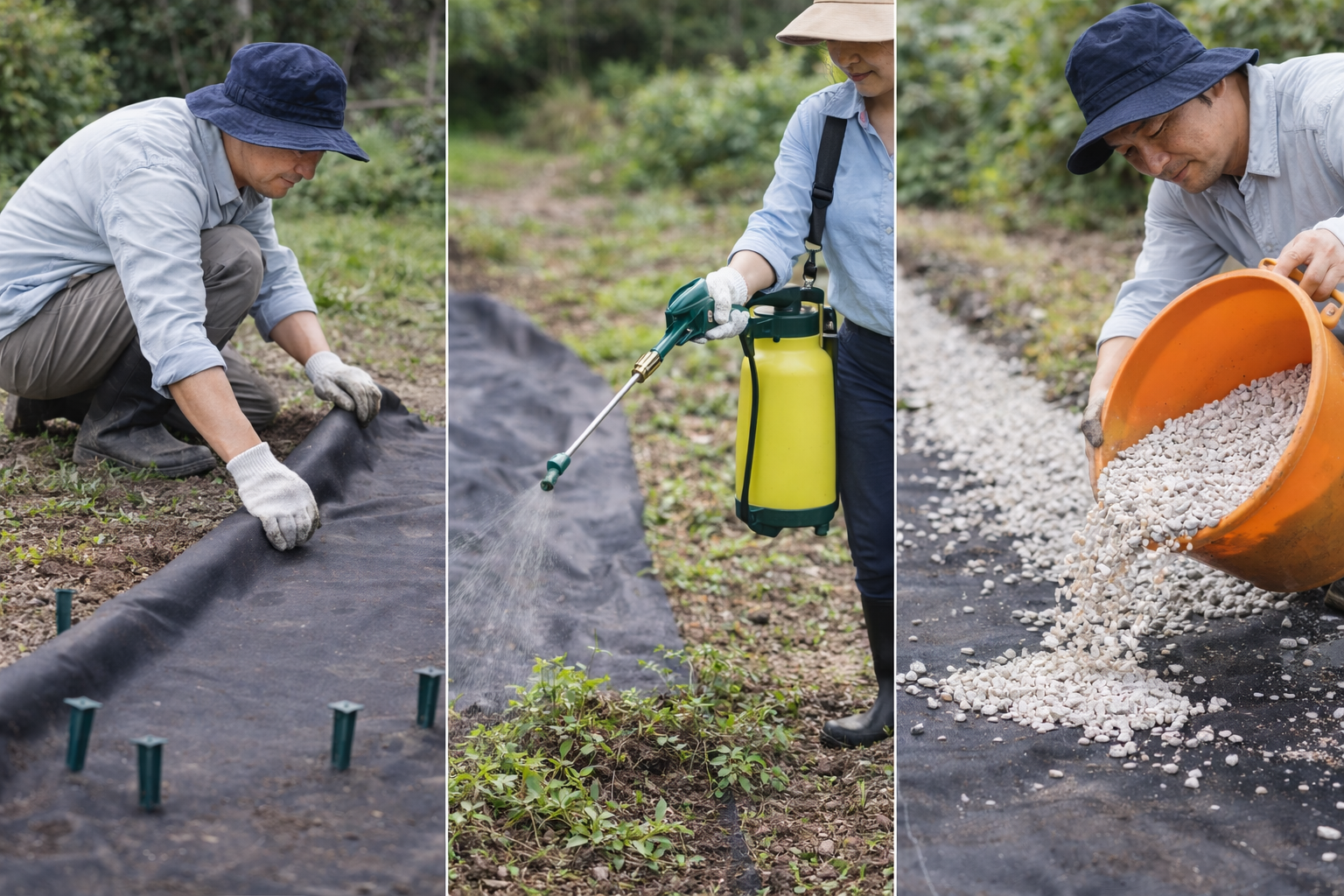 ここでは、草むしり後に効果的な代表的対策である防草シート・除草剤、砂利敷きについて、それぞれの特徴や注意点を詳しく解説します。