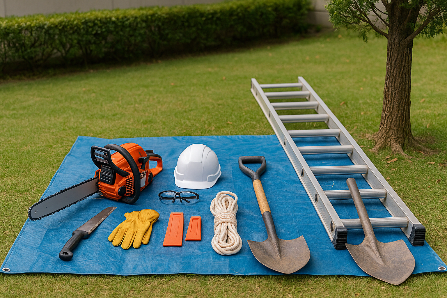 道具を揃えるのは、作業をスムーズに進めるだけでなく、事故を防ぐための第1歩です。例えばチェーンソーやノコギリを使う際には、保護メガネやヘルメットを着用しないと、飛び散る木片によるケガのリスクも。
