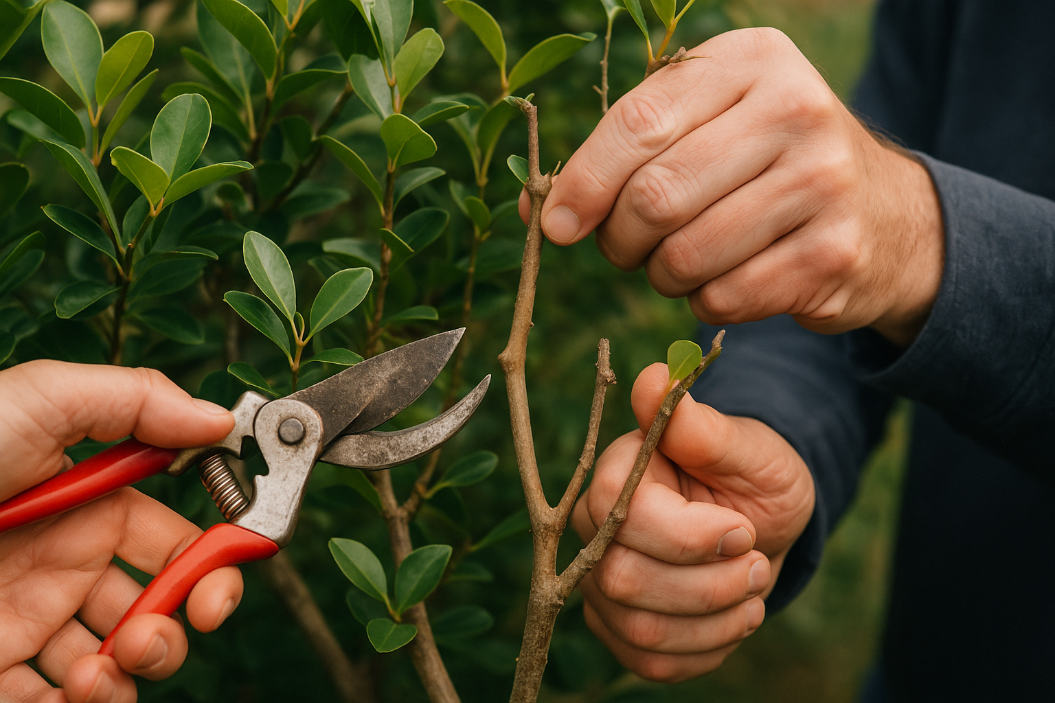常緑広葉樹(ツバキ・キンモクセイ・サザンカなど) | 3月下旬〜6月 | 8〜10月などに軽く調整可能 | 冬場(11〜2月)に大きく切ると寒害を受けやすい |