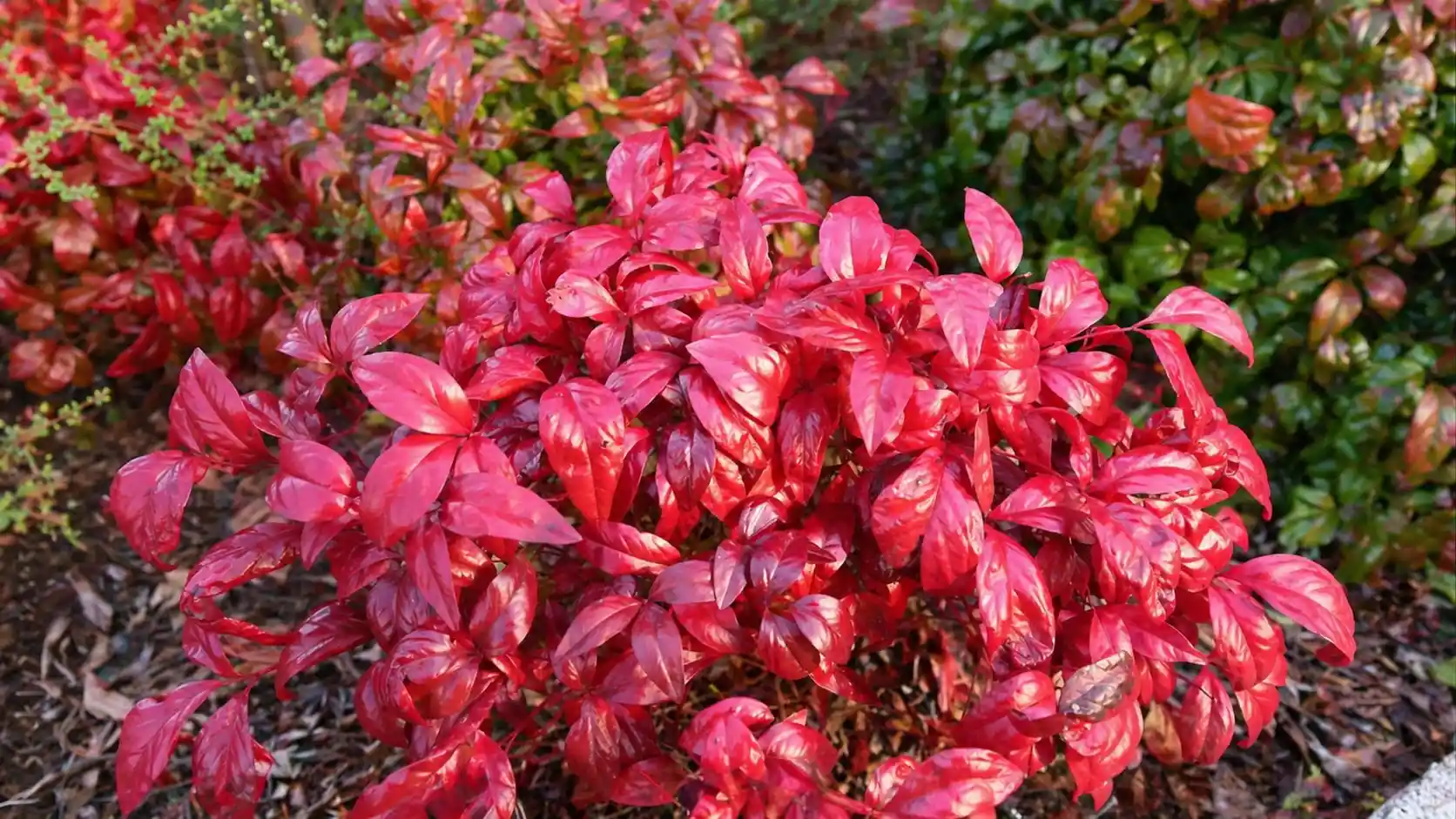 特に秋から冬にかけて赤く色づく葉は、日照条件によって鮮やかさが大きく変わるため要注意。