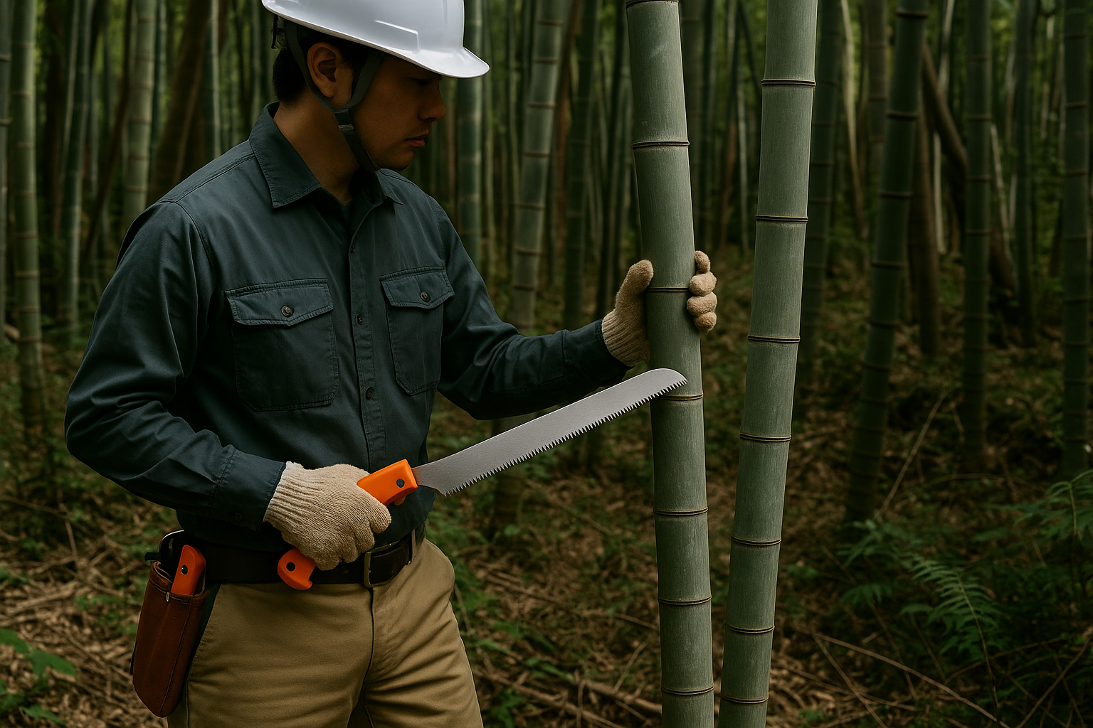 | 竹用ノコギリ | 手作業での伐採 | 竹の滑りやすい表面をしっかり捉える細かい刃。小規模作業に向く。 |