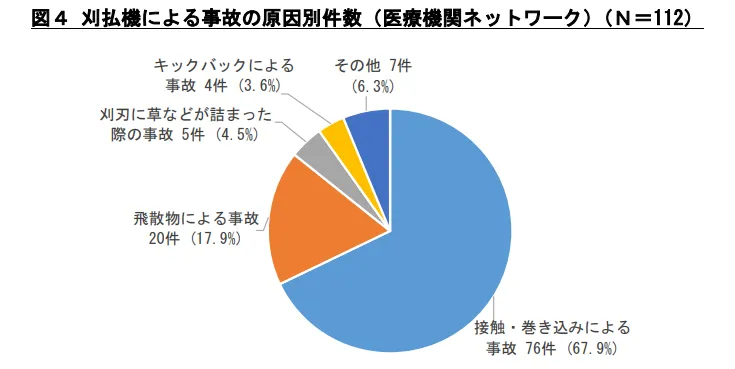 草刈り中に石が跳ねる事故は決して少なくありません。独立行政法人国民生活センターの調査においても、刈払機による飛散物の事故は全体の17.9%を閉めています。