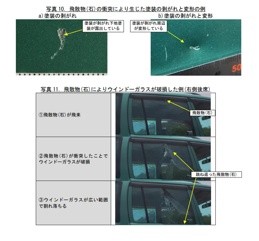 ⚫︎草刈り機で跳ねた小石が車にあたり傷がついた